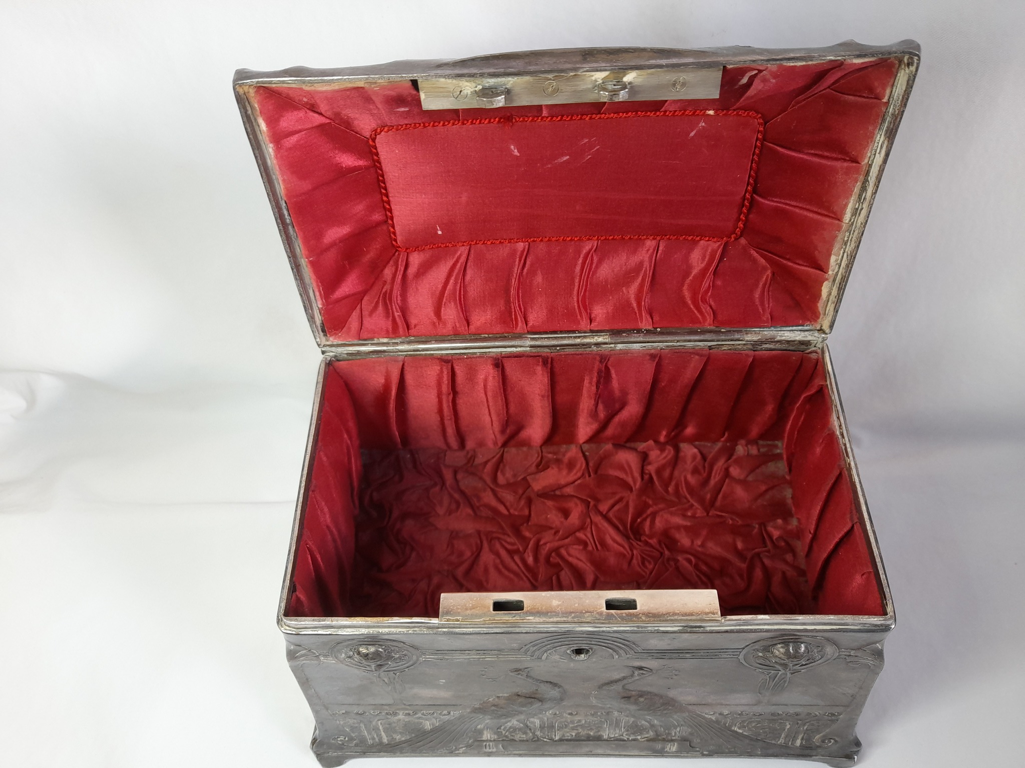 Estilo Jugendstil o Art Nouveau. Mide 23 cm x 16 cm x 20 cm. No tiene la llave.