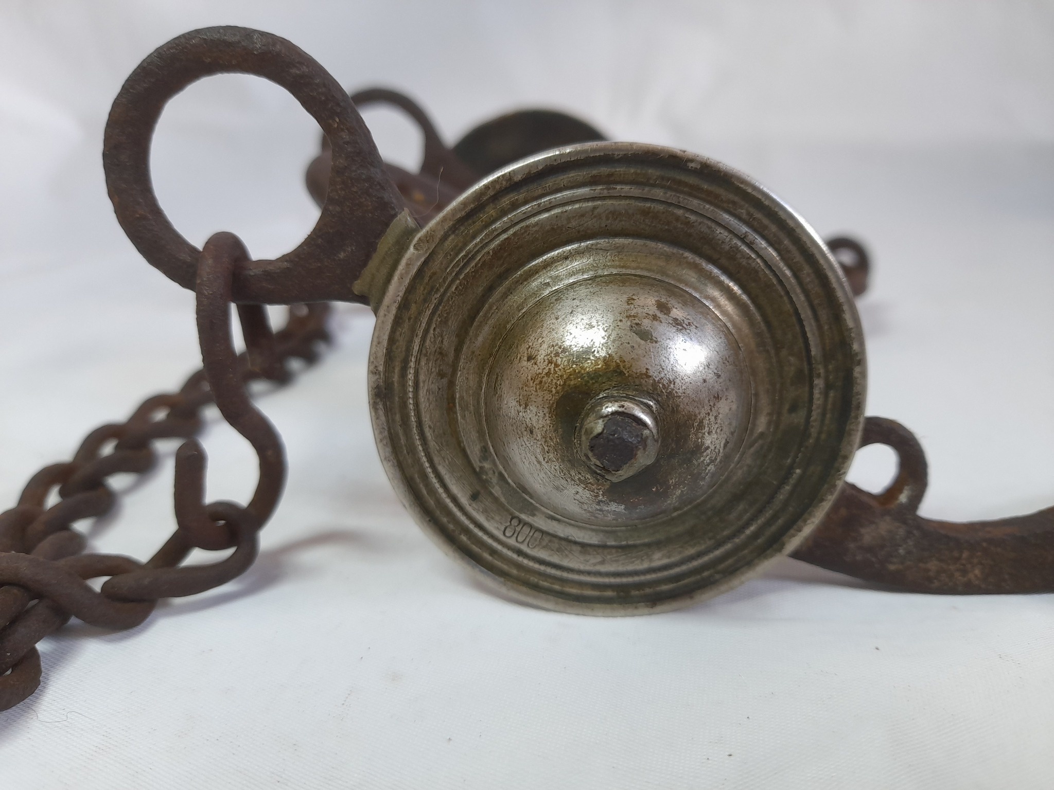Antiguo freno para caballo de hierro con copas de plata 800, miden 5.5 cm de diametro.