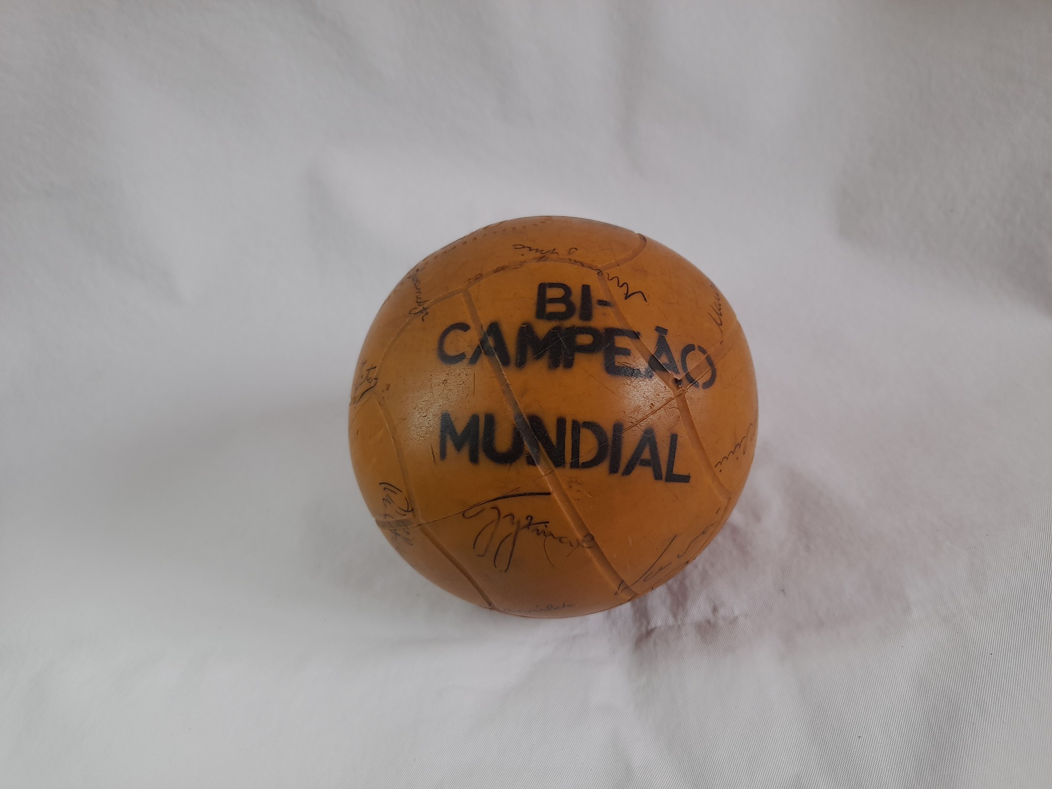 Año 1962. Con la firma impresa de sus jugadores. Mide 10 cm de diámetro
